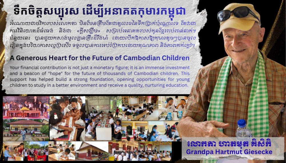 We would like to express our deepest gratitude to Grandpa Hartmut Giesecke for his profound generosity in supporting the development of kindergarten and primary education in Cambodia.