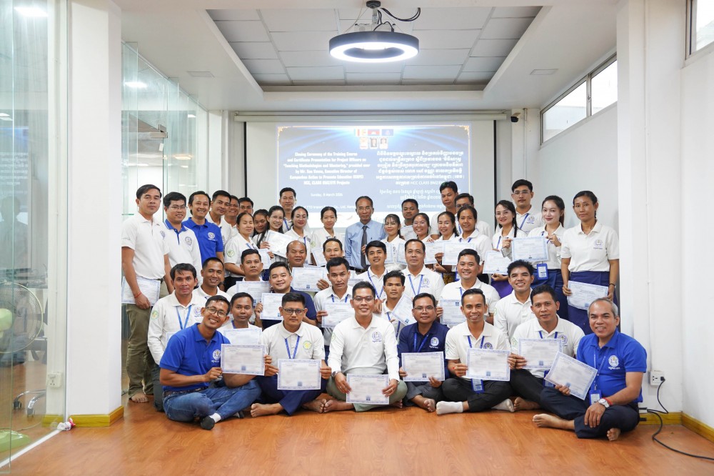 In the context of modernizing digital education, a prestigious closing ceremony and certificate presentation for project officers was held on March 8, 2026, at the Meeting Hall of the TTO Import Export Co., Ltd in Kampong Cham City. This milestone event centered on the theme "Teaching Methodology and Pedagogical Mentoring," organized through a robust collaboration between the Happy Cambodian Children (HCC) project and the Children’s Learning, Access to Support and Sustainability (CLASS) project. The ceremony was presided over by Mr. Sao Vanna, Executive Director of Kampuchea Action to Promote Education (KAPE).