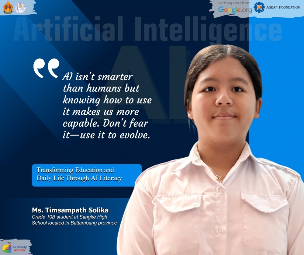 Ms. Timsambat Solika is not just a bright student; she represents the new generation of Cambodian youth—those who embrace technology, use it responsibly, and possess the will to share knowledge for social progress. Her success stands as a testament that "AI Literacy" is the key to unlocking the future.