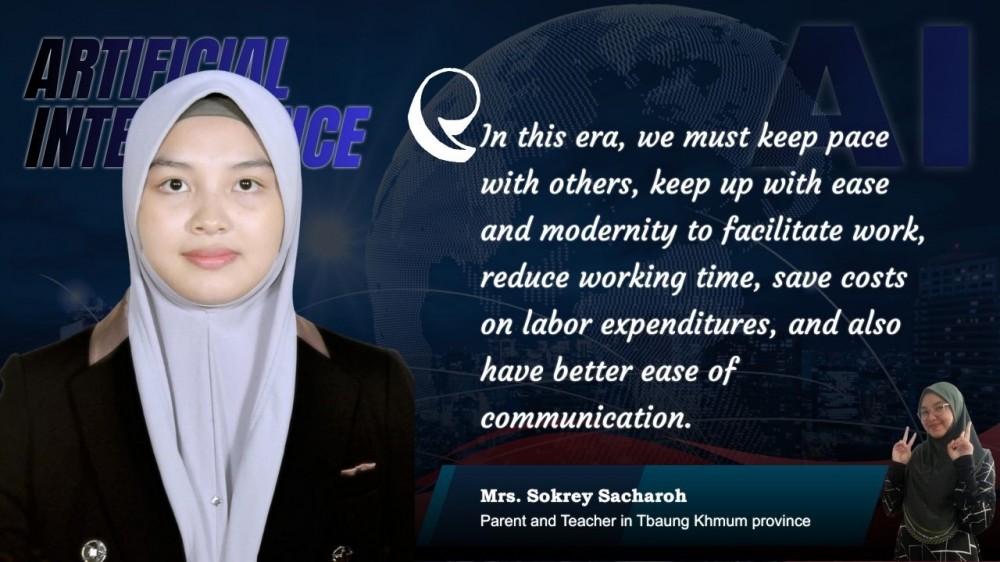 Standing with her deeply confident and feeling pleased, Ms. Sokrey Sacharoh said that I have gained a much better understanding of AI and its functions, new applications for daily use, and several other programs to facilitate teaching, especially being able to compile questions as recreational games... What unexpectedly occurred as a result of the training is that I noticed AI has enabled me to develop my own skills and abilities better than before.”