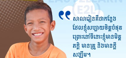 His teachers and school director have also noted the positive impact of the E2L intervention. “Soknov is motivated and now has the opportunity to study like other students. He is no longer afraid or ashamed as he was in the past. He attends school regularly, and if the project had not supported him, he would not have been able to come properly,” said Mr. Vaon Hoeun, the Director of Kreul Primary School.